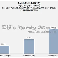 ▲ 590 역시 마찬가지 결과를 보이고 있습니다. 전체적으로 떨어진 프레임, 여전히 좋은 SLI 효율.